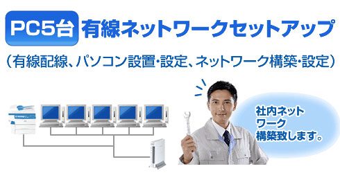 (パソコン設置・設定、有線ネットワーク構築・設定)